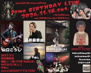 2024/11/16(Sat)ACT:山口こうじ 高井麻奈由 加賀ノ一向(THE NINJA) MICK やぬし tomo(Mighty Filter)