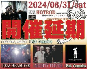 2024/08/31(Sat)ACT:FUCKIN'JUNKIES(滋賀) PEACHRAMONE(高知) Dick YAMAKITA(滋賀) MIGHTY FILTER(徳島)