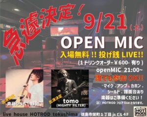 誰でも参加型!OPEN MIC 入場無料!!投げ銭LIVE