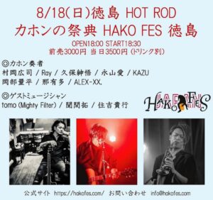 2024/08/18(Sun)ACT:■カホン奏者 村岡広司 Ray 久保紳悟 永山愛 KAZU 岡部量平 那有多 ALEX-XX. ■ゲストミュージシャン tomo(MIghty Filter) 聞間拓 住吉貴行